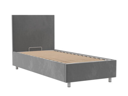 Кровать оснащена основанием с подъемным механизмом, под которым располагается бельевой ящик глубиной 16 см. Рекомендуемая высота матраса от 13 см, вес матраса до 50 кг. Чехлы на царгах несъемные. Высота/толщина царг: 28 см / 4 см (средняя), 2 см - (боковые).