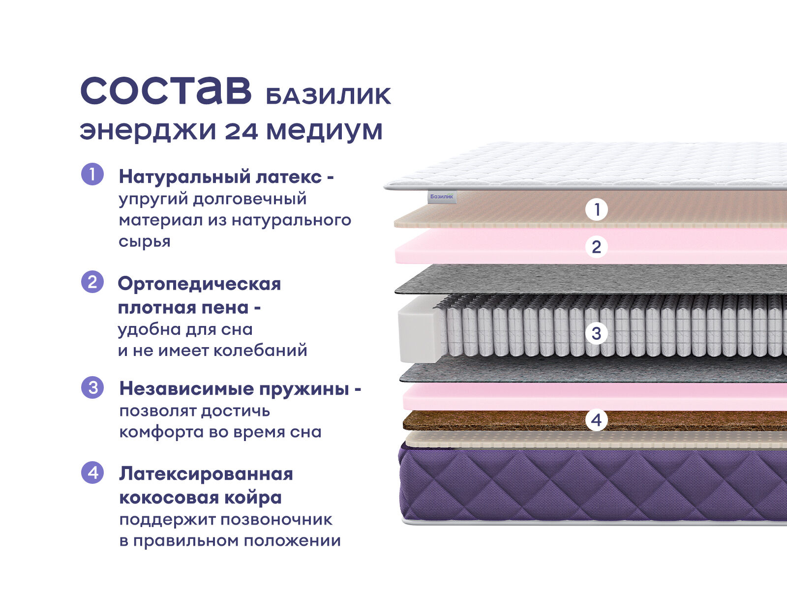 Комплект Левита + Базилик Энерджи 24 Медиум — элегантный альянс французского шарма и ортопедического комфорта. Кровать с уютным изголовьем и матрас средней жесткости создают пространство, где каждая деталь продумана для вашего отдыха: от тактильного удовольствия до поддержки спины. Покупая комплект, вы получаете не просто мебель, а готовое решение для сна, сочетающее экономию до 36% от стоимости, стиль и заботу о здоровье.