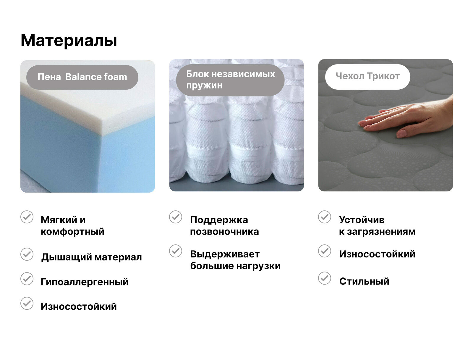 Пена Balance foam – пластичный наполнитель, который умеет адаптироваться под фигуру и её линии, создавая тем самым очень комфортное место сна.