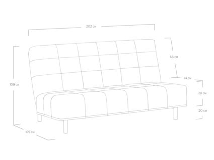 Диван для сна и отдыха в современном стиле с механизмом трансформации «клик-кляк». Основа дивана - металлическое основание с ламелями и анатомическим матрасом с независимым пружинным блоком. Благодаря съемному чехлу с объемной стежкой в форме квадратов, диван органично впишется в современные интерьеры в стиле минимализм. Благодаря отсутствию подлокотников у дивана минимальные габариты как в сложенном, так и разложенном виде.