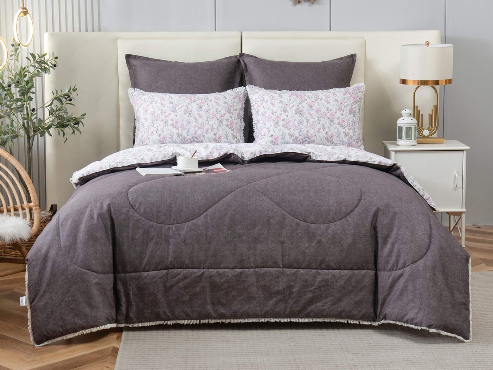 В комплекты комфортеров с одеялом Бернадетт входят наволочки, простыня и легкое всесезонное одеяло. Оцените это современное и очень удобное решение, которое идеально подходит тем, кто не любит возиться с пододеяльниками.