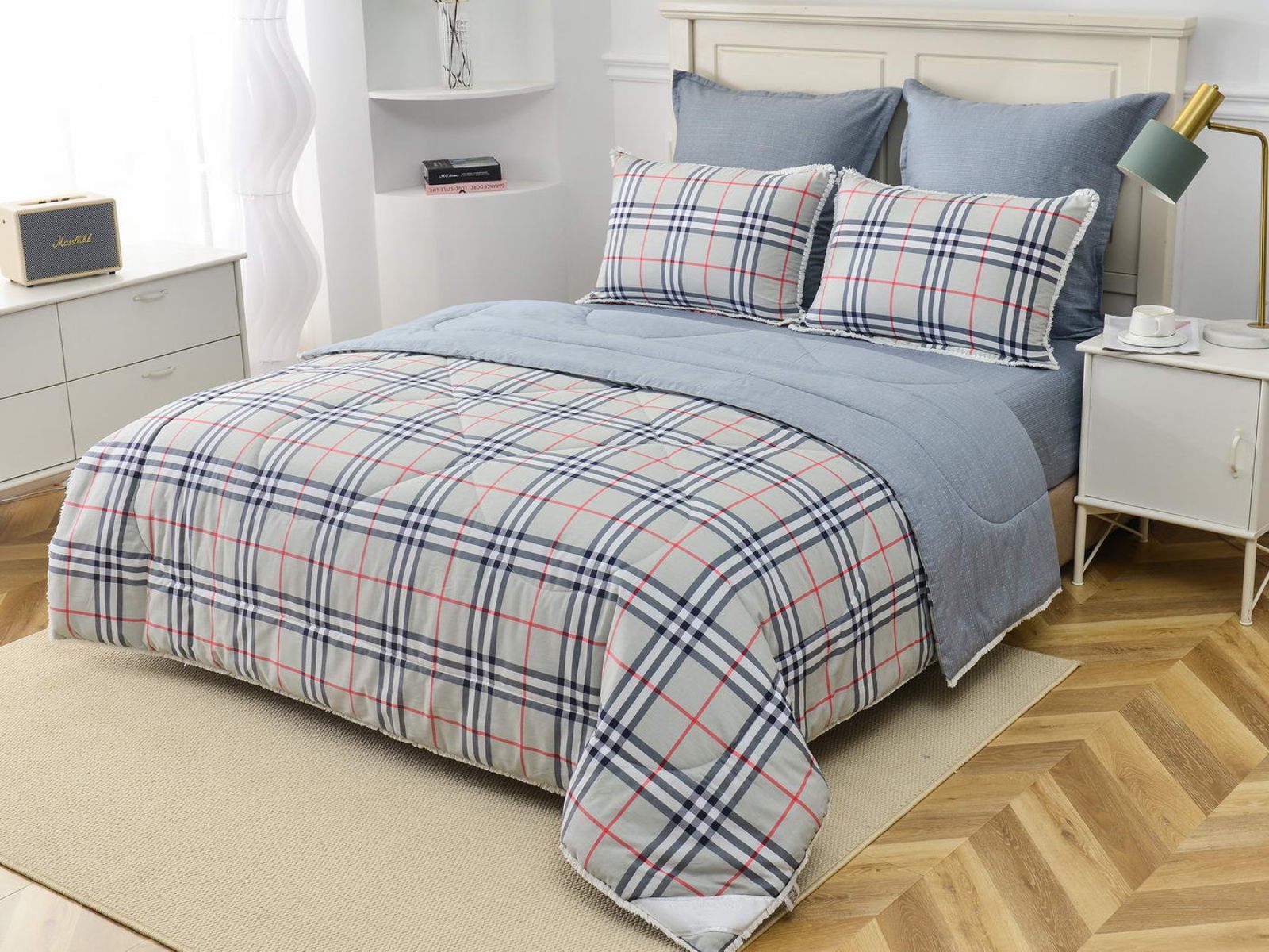 В комплекты комфортеров с одеялом Бернадетт входят наволочки, простыня и легкое всесезонное одеяло. Оцените это современное и очень удобное решение, которое идеально подходит тем, кто не любит возиться с пододеяльниками.