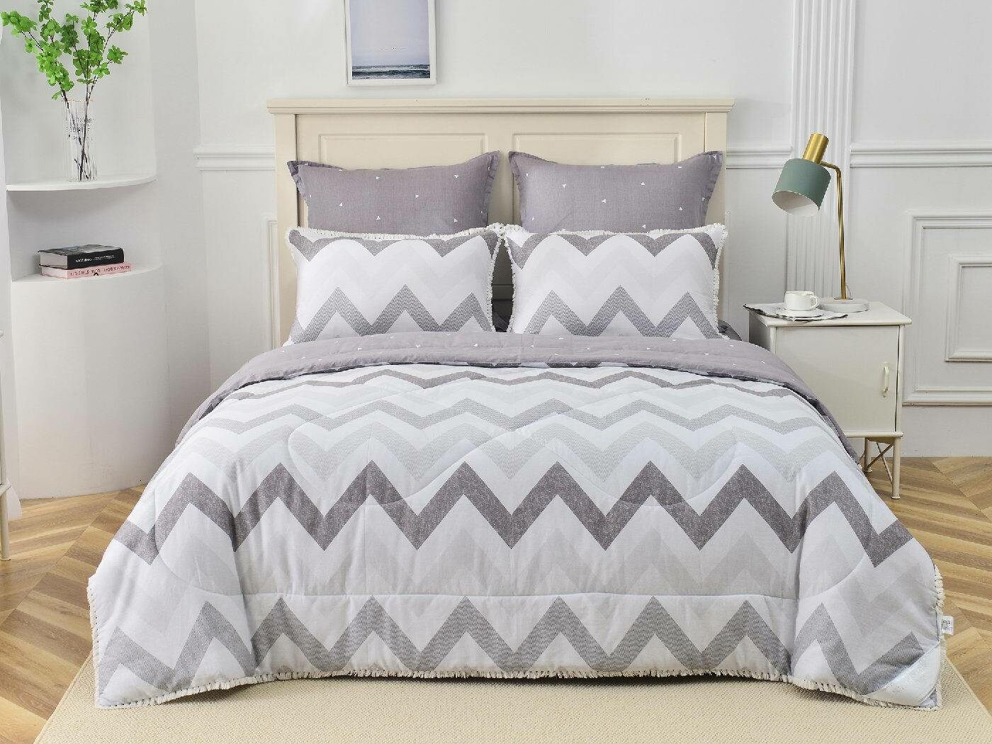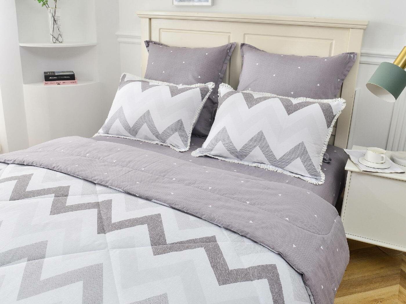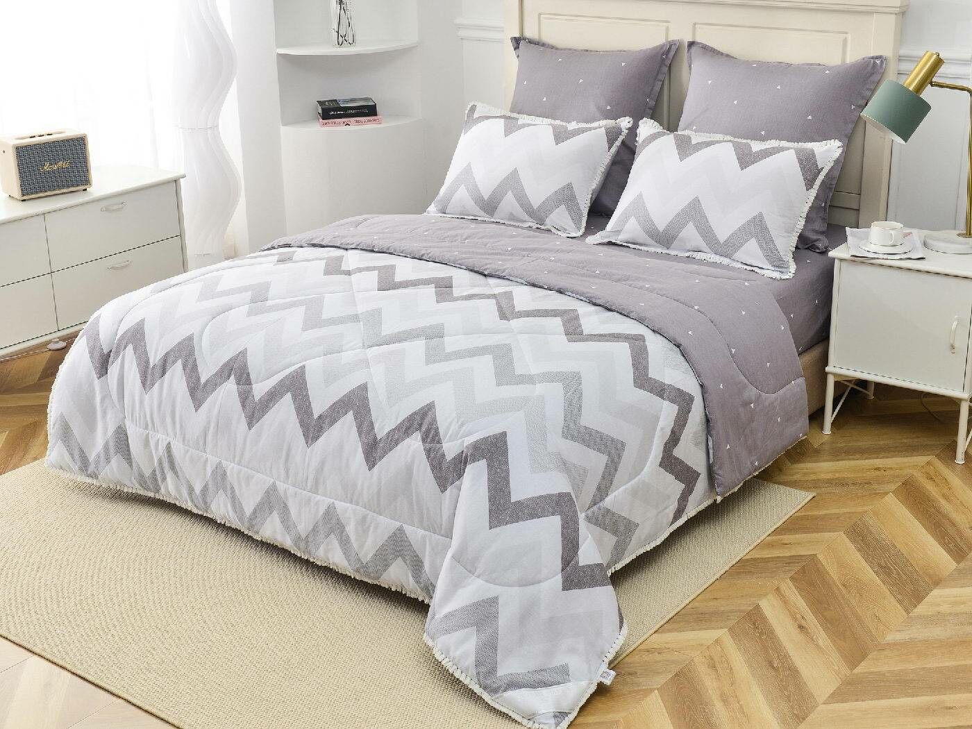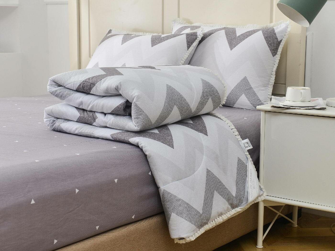 В комплекты комфортеров с одеялом Бернадетт входят наволочки, простыня и легкое всесезонное одеяло. Оцените это современное и очень удобное решение, которое идеально подходит тем, кто не любит возиться с пододеяльниками.