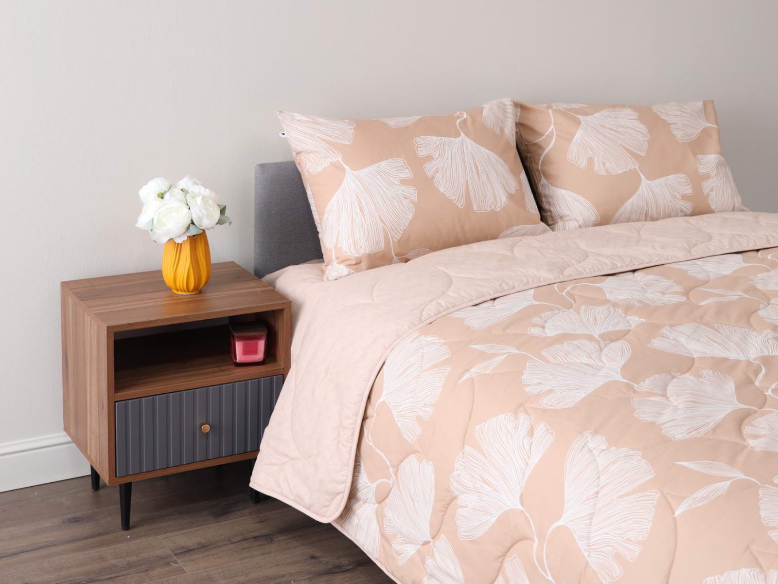 Комплект Мелвин легко стирается в обычной машине в бережном режиме и также легко гладится.
