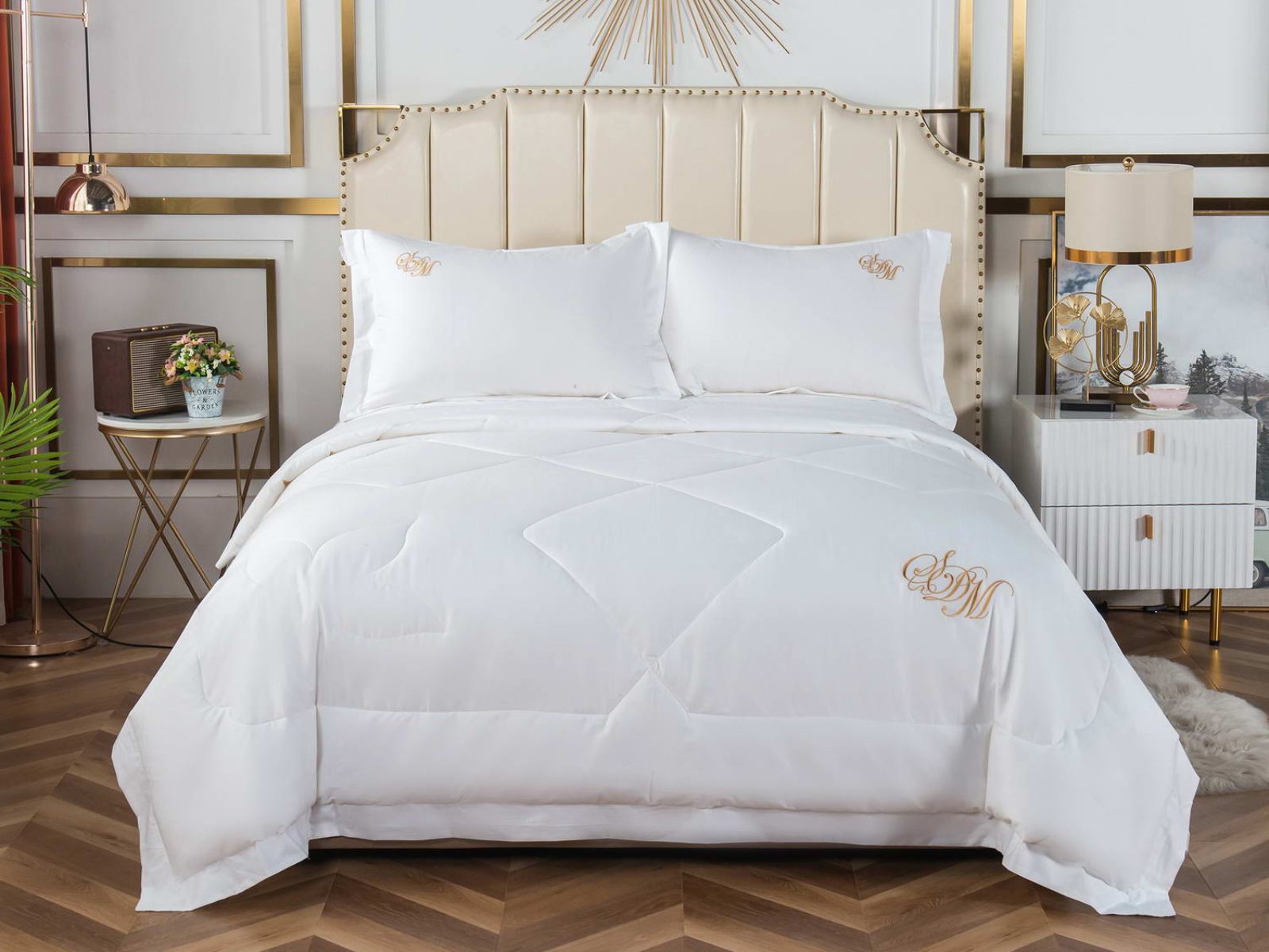Элегантные комплекты постельного белья с одеялом премиум класса из нежной, натуральной ткани макосатин Нельсон. Этот материал обладает рядом важных качеств: он прочный, но мягкий, гладкая поверхность придает постельному белью красивый внешний вид. Натуральная ткань не вызывает аллергии и раздражения, такое постельное белье приятно использовать в любое время года, и в жару, и в холод.