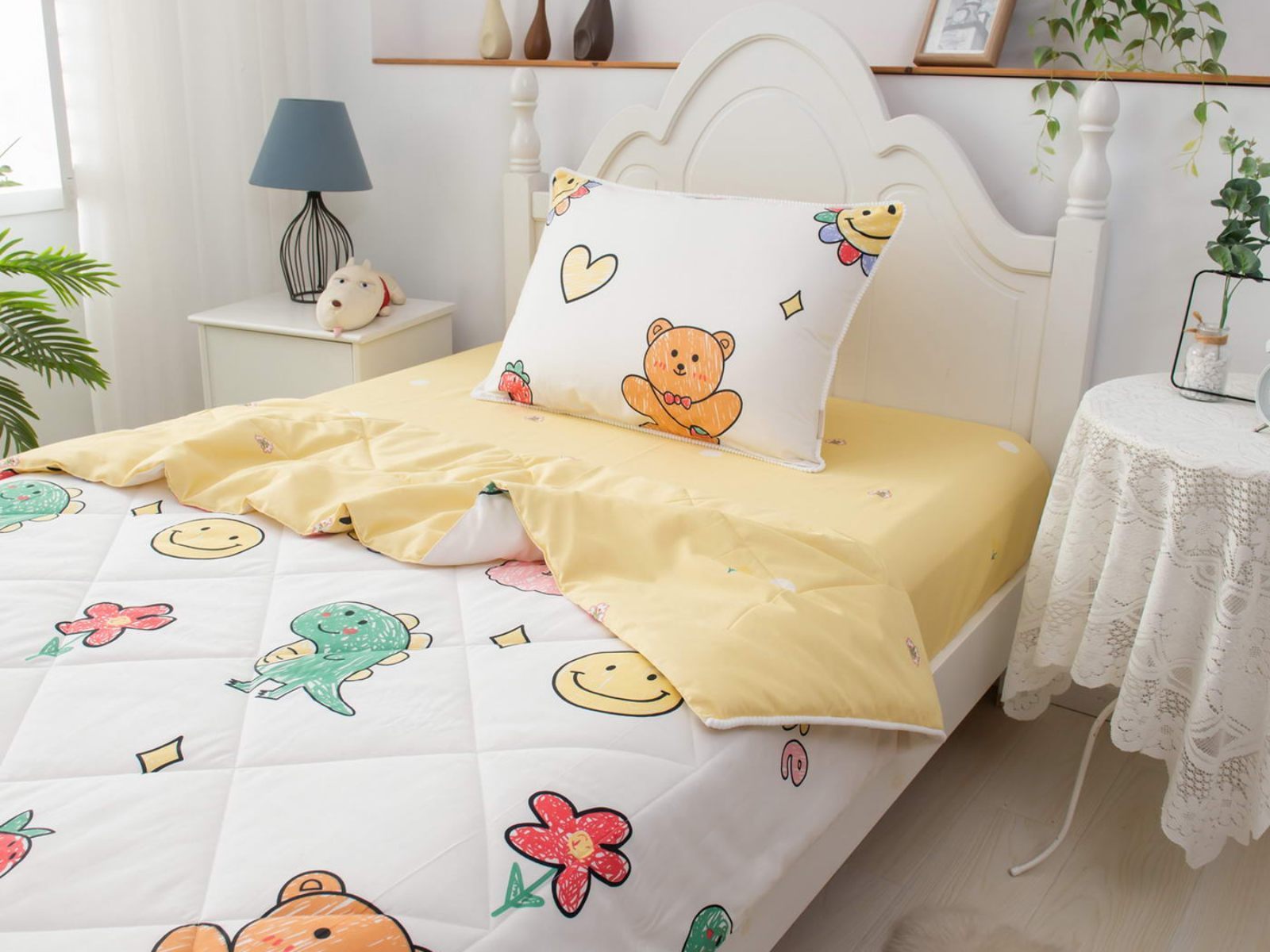 Само одеяло тонкое и легкое, но под ним ребенку не будет холодно зимой или жарко летом. Такое одеяло можно использовать в любое время года, 100% хлопок гарантирует качественный сон, т.к. натуральная ткань хорошо впитывает влагу и позволяет коже дышать. Натуральные материалы не вызывают аллергии. Огромная палитра оттенков и яркие дизайны комплектов понравятся детям и подросткам.