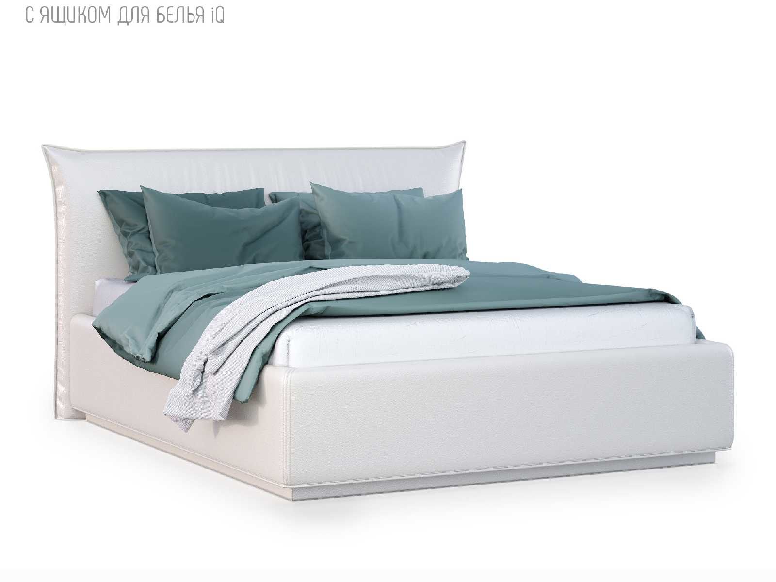 Кровать укомплектована IQ с подъемным механизмом и ящиком для белья без дна (дополнительная платная опция - дно к ящику IQ из HDF (ХДФ). Каркас кровати на цоколе, декоративный чехол на цоколе съёмный. Глубина ящика для белья - 30 см, без ограничения нагрузки на ящик.