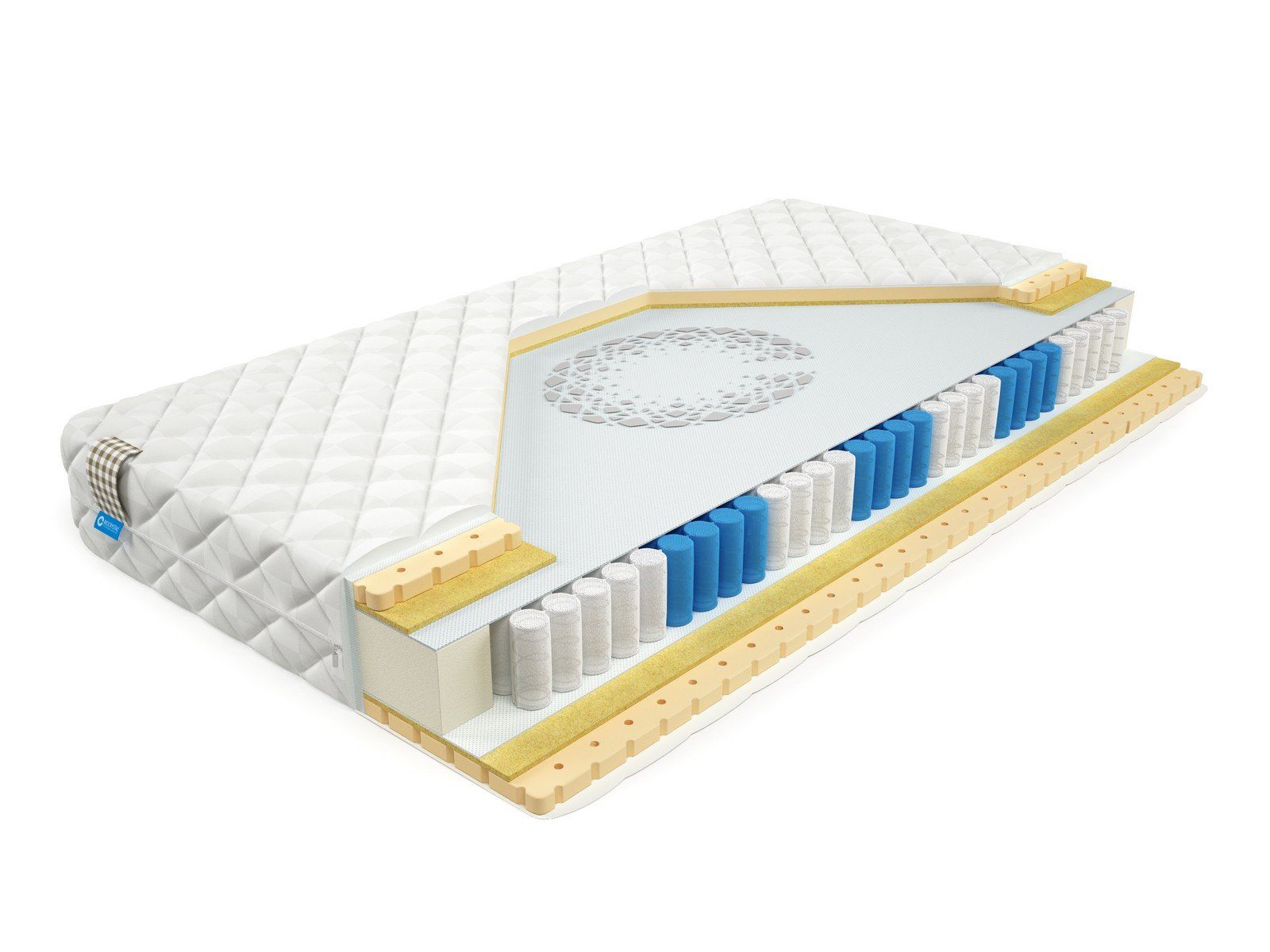 Самый популярный настил. Рулонный латекс отличный и долговечный, хорошо распределяет нагрузку, отлично подчёркивает ортопедический эффект у независимого пружинного блока. За счёт упругости латекса давление на сосуды и мышцы во время сна оказывается минимальным. Латекс – уникальный материал с точки зрения индустрии сна. Он прекрасно используется и в сочетании с пружинным матрасом в качестве наполнителя, и в качестве самостоятельной основы.