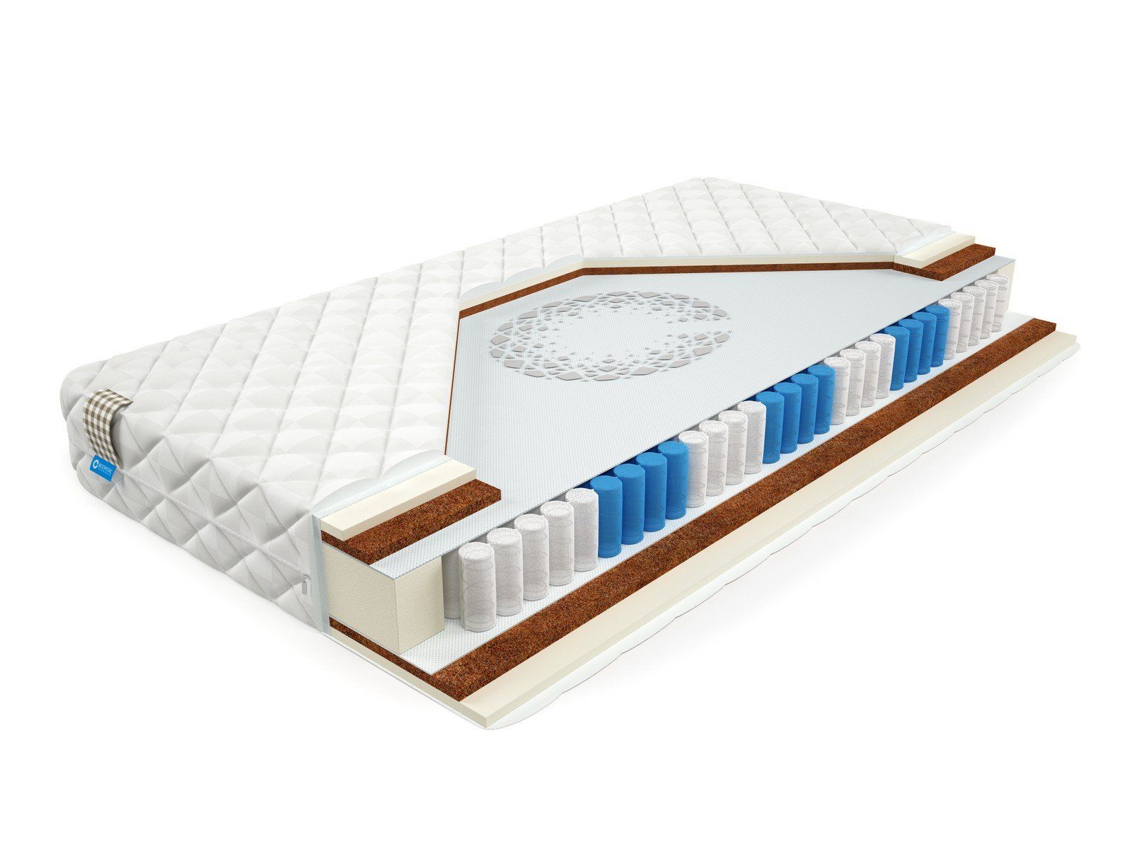 Матрас BioCrystal First L - недорогой матрас средней жесткости. Матрас c ортопедическим эффектом на основе семи-зонного пружинного долговечного блока независимых пружин SIlverSpringPocket 7 zone. Данный блок насчитывает 580 металлических пружин на одно спальное место, это оптимальное количество пружин для бюджетного матраса. 7 зональный пружинный блок SSP 580 значительно прочнее обычного блока независимых пружин, и имеет большее количество витков, что, в свою очередь, лучше сказывается на упругости матраса и качестве сна. Матрас насчитывает семь зон жесткости и правильно повторяет изгибы позвоночника во время сна или отдыха. С каждой стороны матраса по 2 сантиметра пенополиуретана и 2 сантиметра латексированного кокосового волокна. Это оптимальный выбор для тех, кому важен комфортный сон и долговечность матраса.
