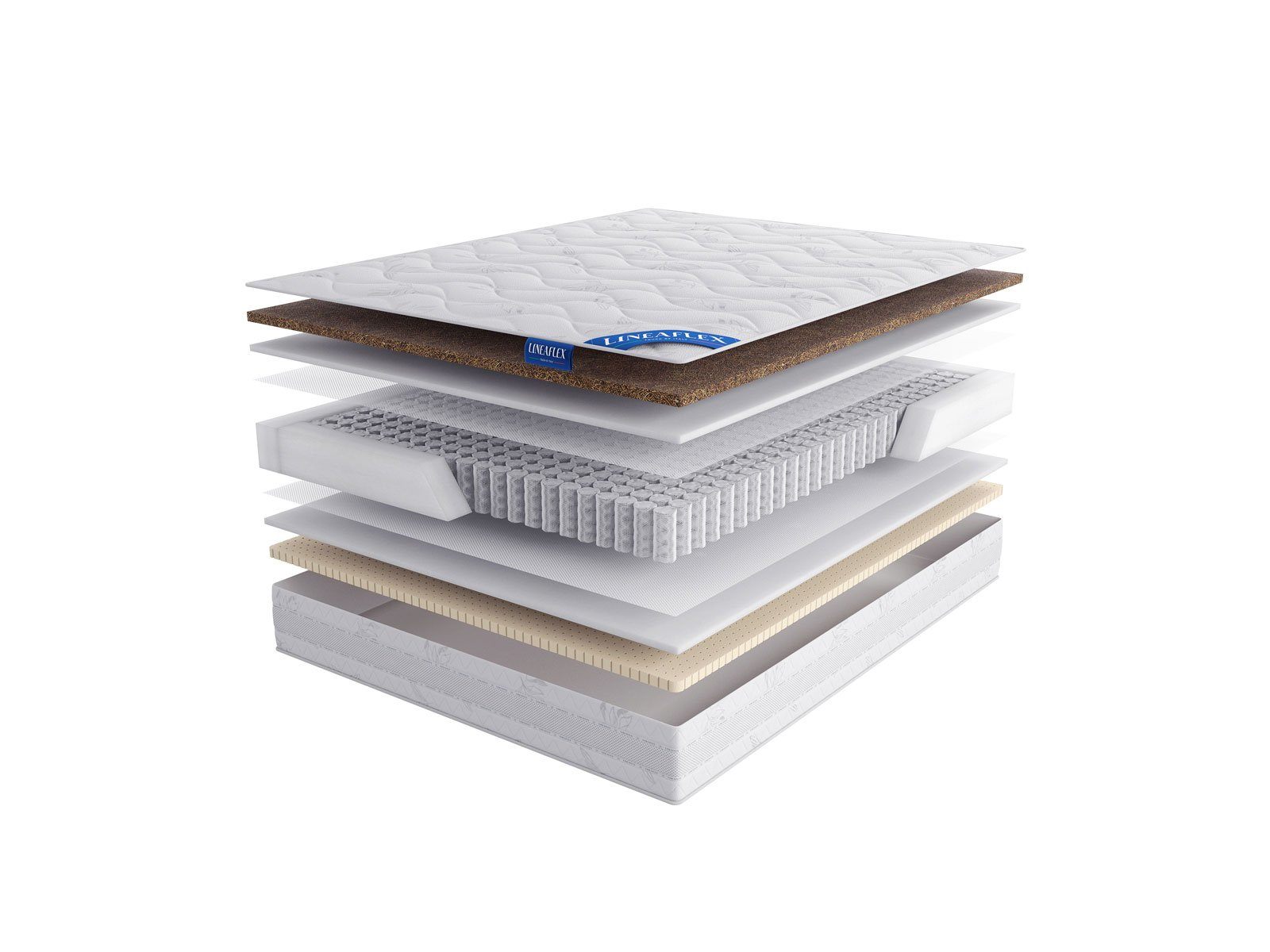 Под койрой и латексом скрывается ортопедическая пена Ergoflex. В меру мягкий и очень упругий наполнитель. Материал отлично гасит вибрации пружинного блока и самым естественным образом усиливает работу наполнителей, установленных выше.