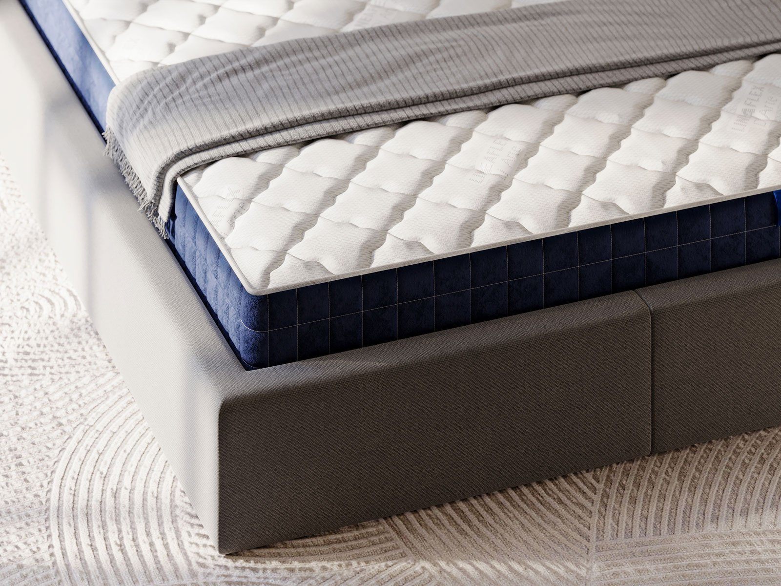 Матрас обтягивается чехлом «4 сезона», изготовленным специально для премиальной линейки моделей фабрики. Мягкая шелковистая обивка отличается нежной текстурой ткани. В основу материала включена натуральная вискоза, которая позволяет полотну проветриваться, не скапливать статическое электричество и быть гигроскопичным. Бурлет матраса оснащен боковыми ручками.