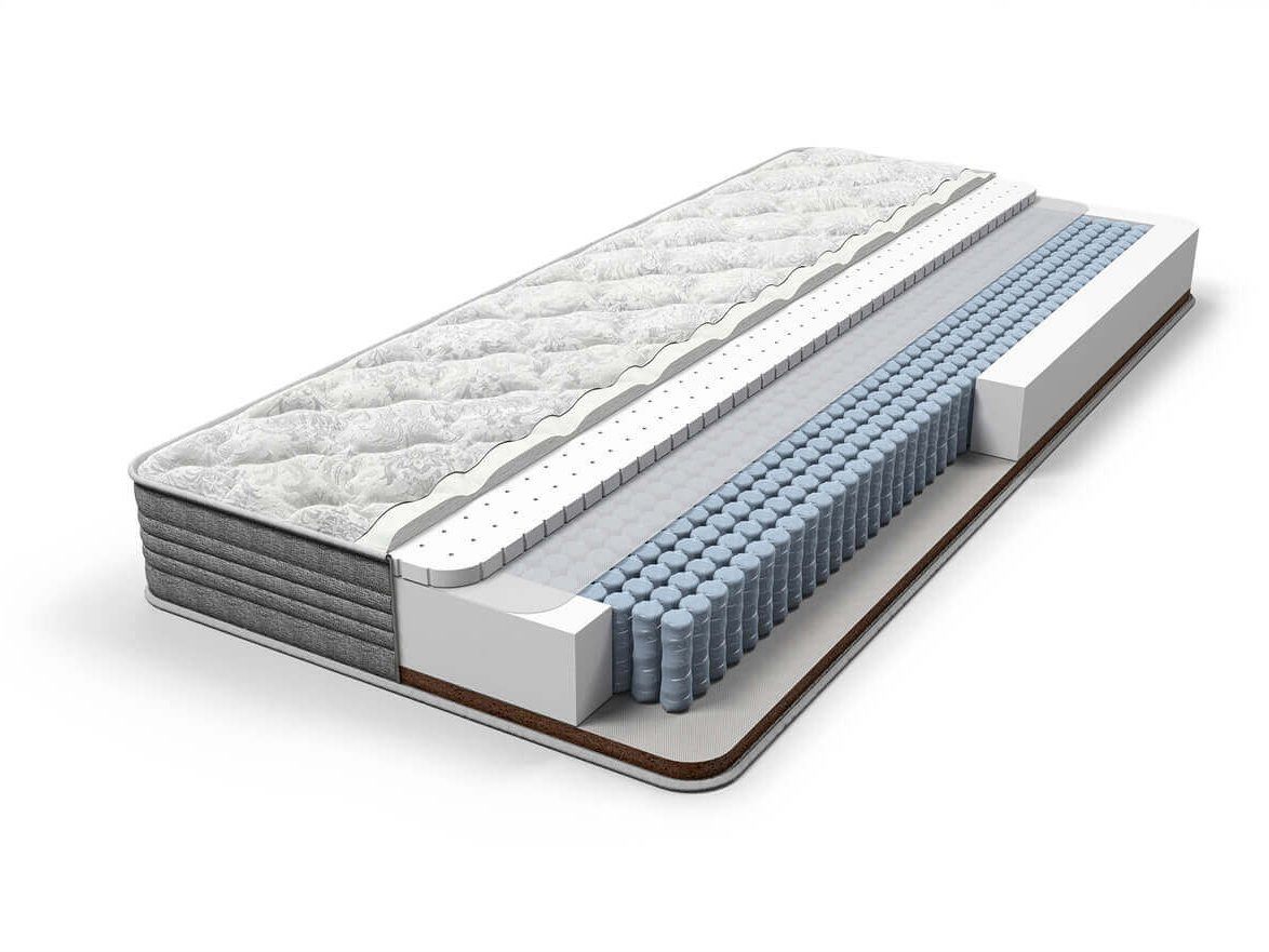 Матрас на пружинном блоке MultiPocket, плотностью 1 000 пружин на спальное место. Благодаря высокой плотности пружин в блоке матрас обеспечивает качественную поддержку позвоночника, выдерживает большие нагрузки и равномерно распределяет вес по всей горизонтальной поверхности матраса. В качестве наполнителя мягкого слоя используется натуральный латекс и кокосовая койра.