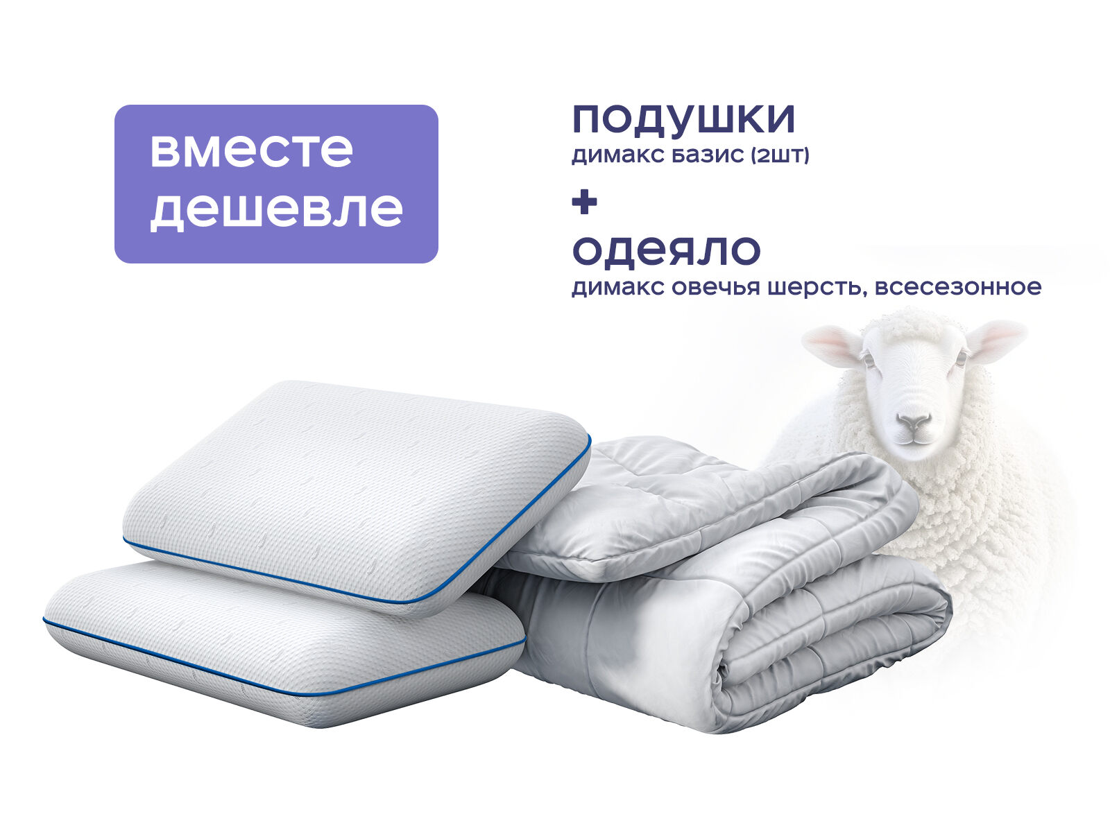 Комплект одеяло Димакс Овечья шерсть всесезонное + подушка Димакс Базис 2 шт. — идеальный союз природного тепла и анатомической точности для вашего здорового сна. Покупая набор, вы экономите до 46% и получаете всё необходимое: одеяло из натуральной овечьей шерсти с климат-контролем и две подушки с эффектом памяти, которые вместе создают условия для глубокого восстановления. Больше никаких компромиссов — этот набор идеально согреет и расслабит, заботясь о вашем сне 24/7.
