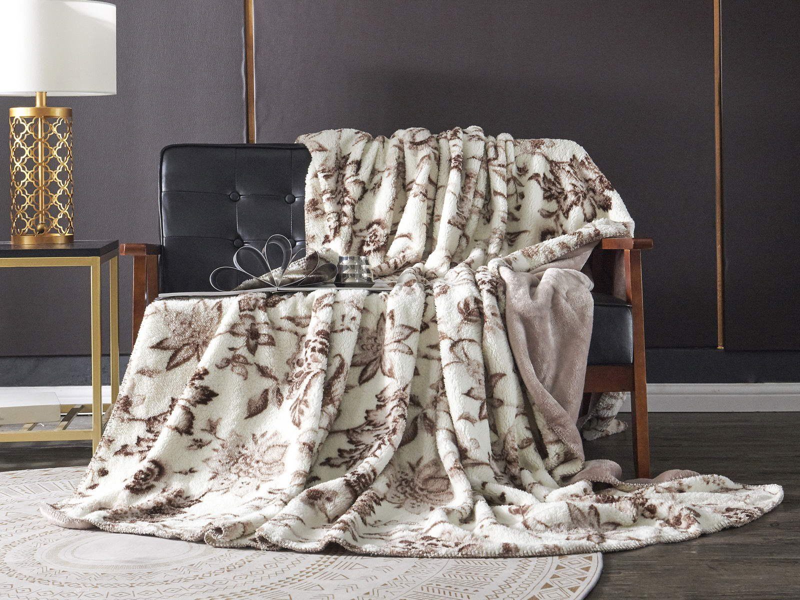 Плед двусторонний: с одной стороны однотонный, с другой - рисунок прованс.