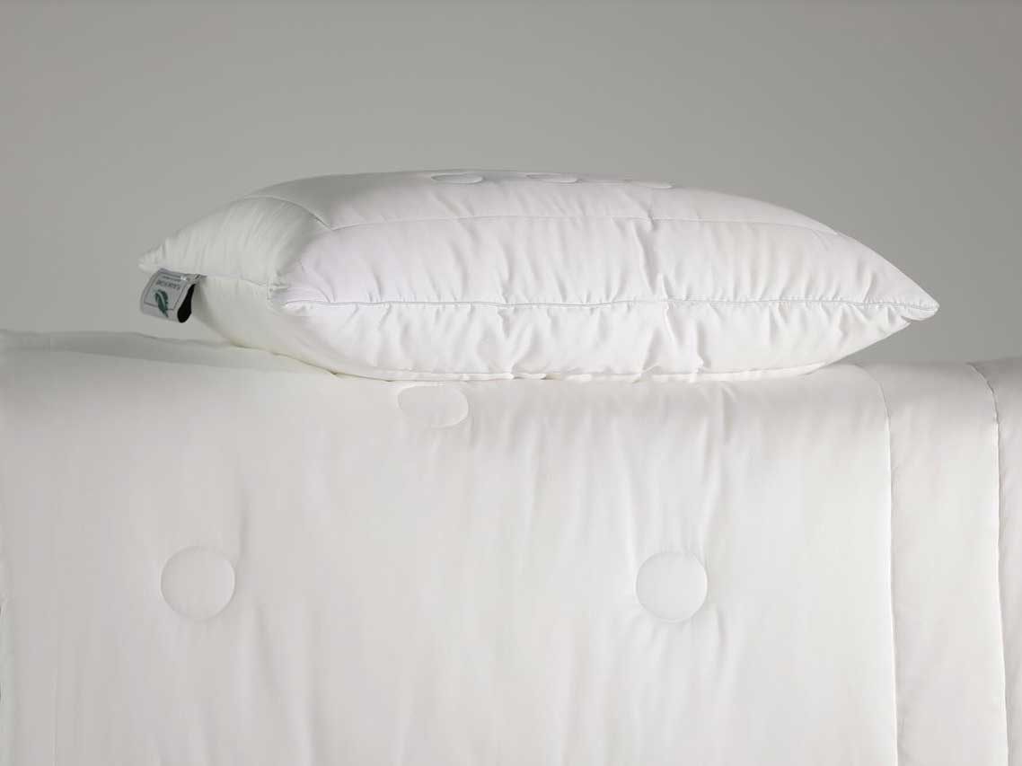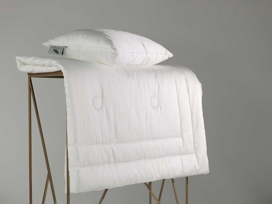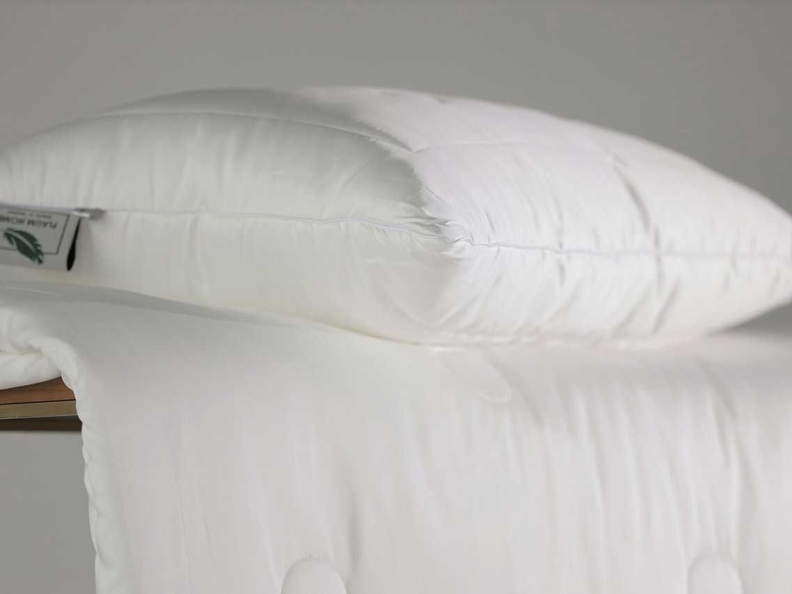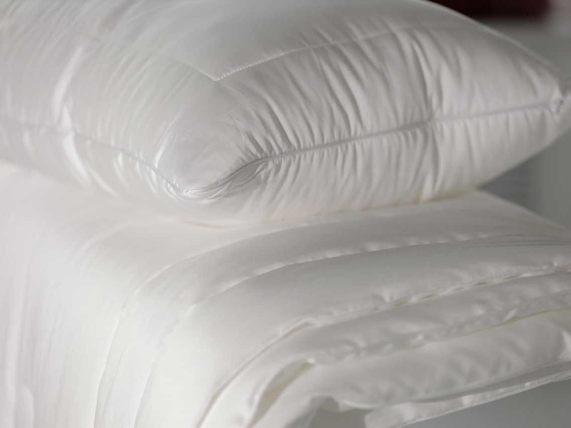 Основная ткань чехла состоит из сатина: 60% лиоцеля и 40% хлопка, простегана вместе с наполнителем из 80% эвкалиптового волокна и 20% вискозы. Чехол подушки окантован атласным кантом белого цвета , и имеет боковую застежку на молнию.