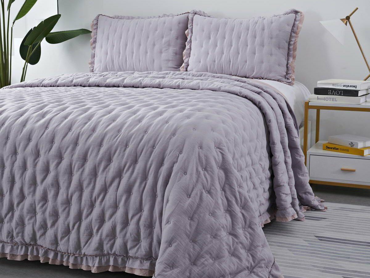 Двусторонние стеганные покрывала Элизабет выполнены из вискозы и хлопка, они легкие и прочные. В комплекте с покрывалом идут две наволочки, вы можете использовать покрывало по назначению, либо в качестве постельного белья. В любом случае, вы будете в восторге от этого комплекта!
