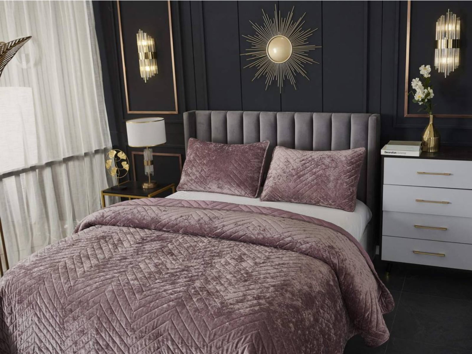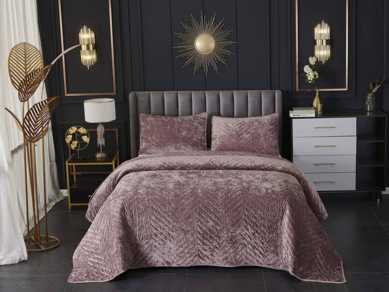 Покрывала Фернанд выглядят как будто сошли с картин, изображающих королевские покои. Бархатную ткань начали изготавливать еще в Средние века, её использовали в оформлении дворцов и изготавливали плащи и головные уборы для знати. Теперь и вы можете прикоснуться к этой роскоши! Бархатная текстура приятная на ощупь, а из-за особого плетения ткани, игра света на ней выглядит благородно. Поэтому покрывало Фернанд создаст необычайно уютную атмосферу в вашей спальне. Цветовая гамма разнообразна и включает восемь благородных оттенков: капучино, бежевый, изумруд, горчичный, терракотовый, пепельная роза, серый, стоун. За покрывалом Фернанд легко ухаживать: стирка при температуре 30 градусов, вручную или в машинке. Важно хорошо просушить изделие! При правильном уходе вещь прослужит долгие годы не потеряв форму и цвет.