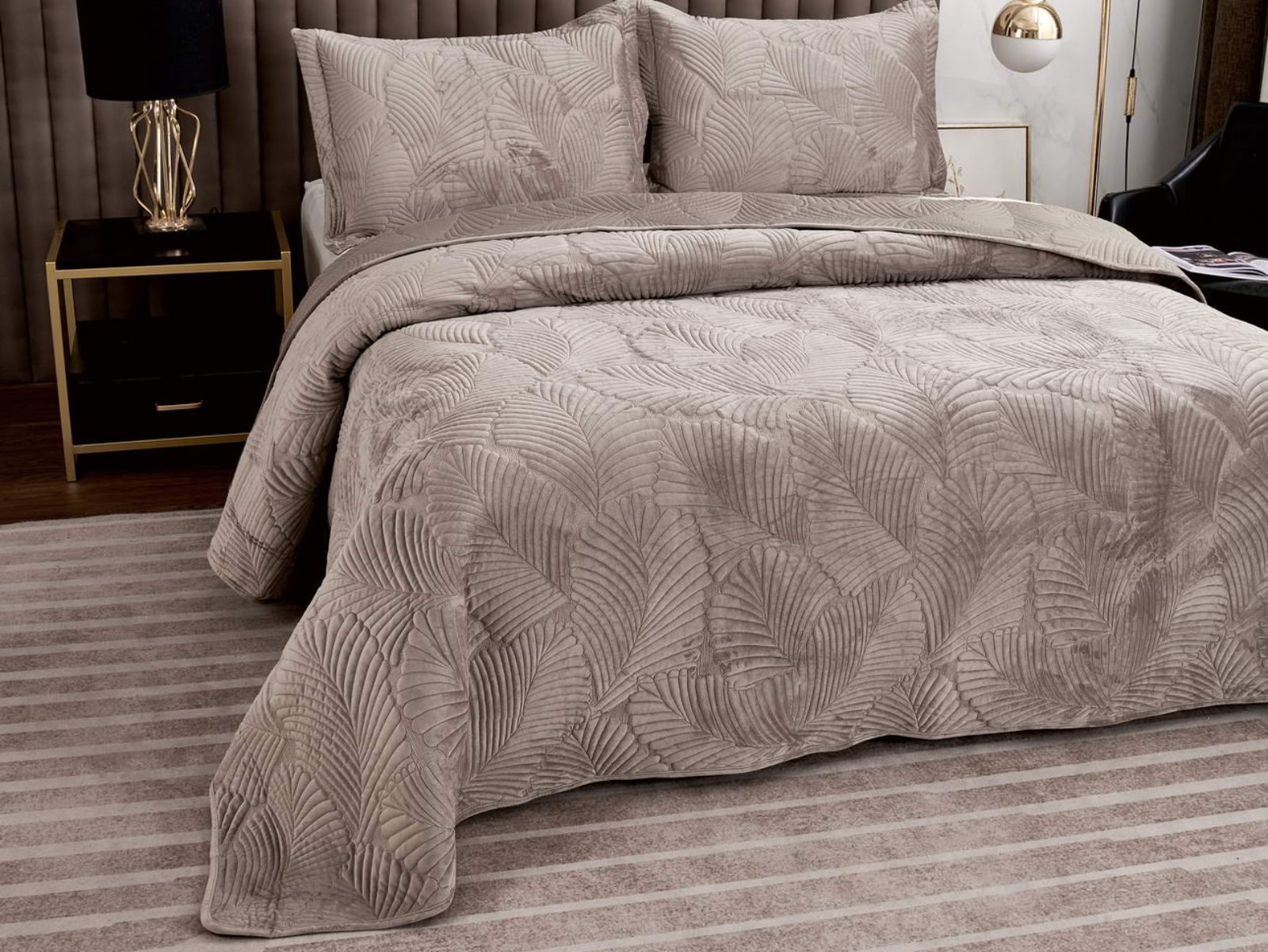 Покрывало приятное на ощупь, прекрасно выглядит. Из-за особого плетения, велюровая ткань будет отражать свет и красиво переливаться при разном освещении. Изделия из велюра хорошо сохраняют тепло и дарят чувство комфорта.