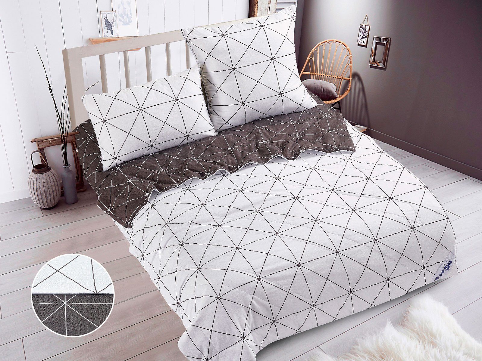 В данный комплект вместо пододеяльника входит облегченное одеяло. Комплект подойдет тем, кто устал от мучительного натягивания пододеяльников на одеяло.