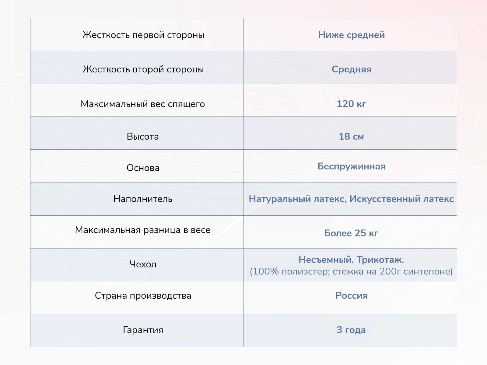 Модель объединяет в себе комфорт мягкого латекса, поддерживающую основу из Balance Foam и удобный формат поставки в рулоне.